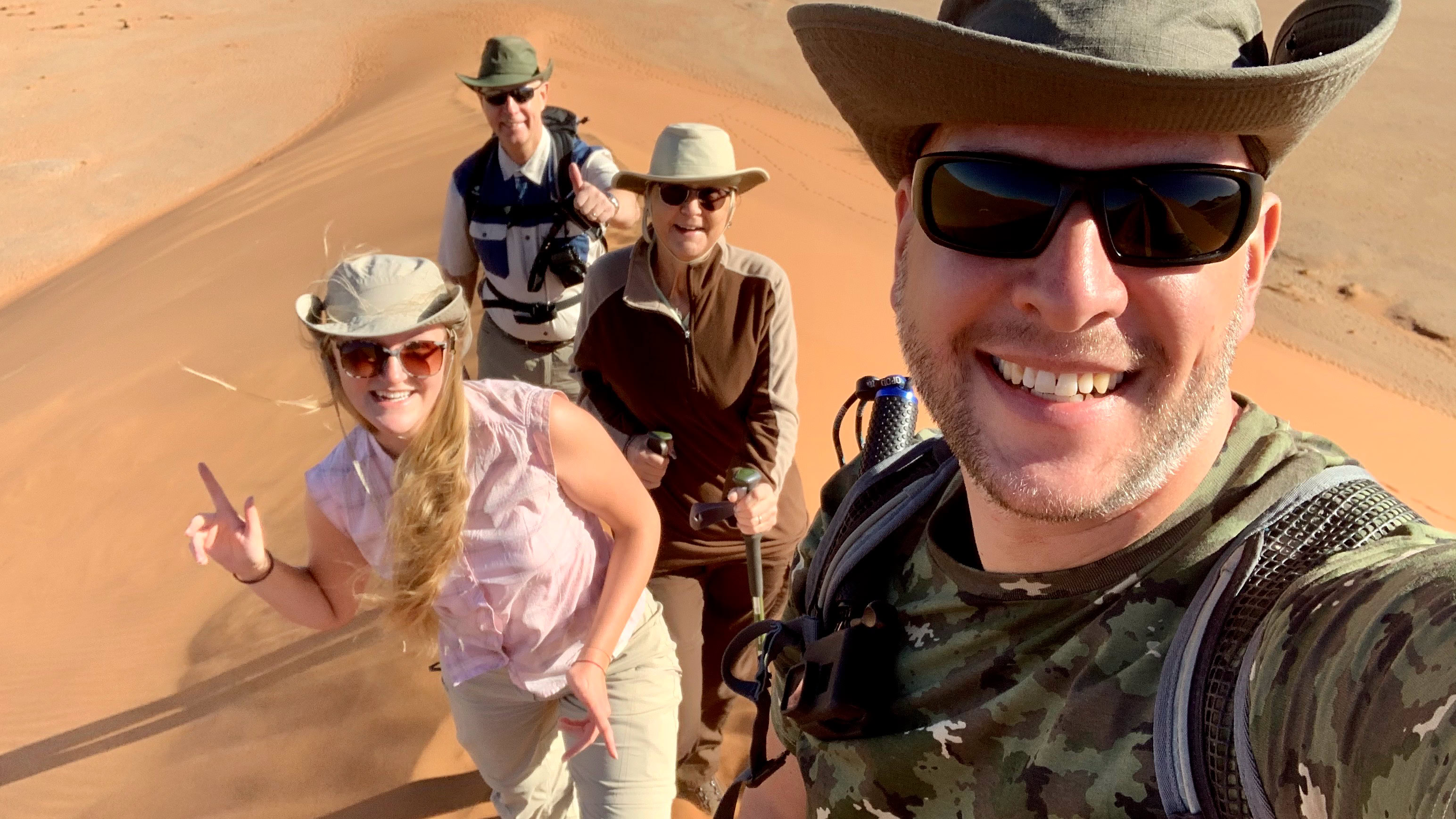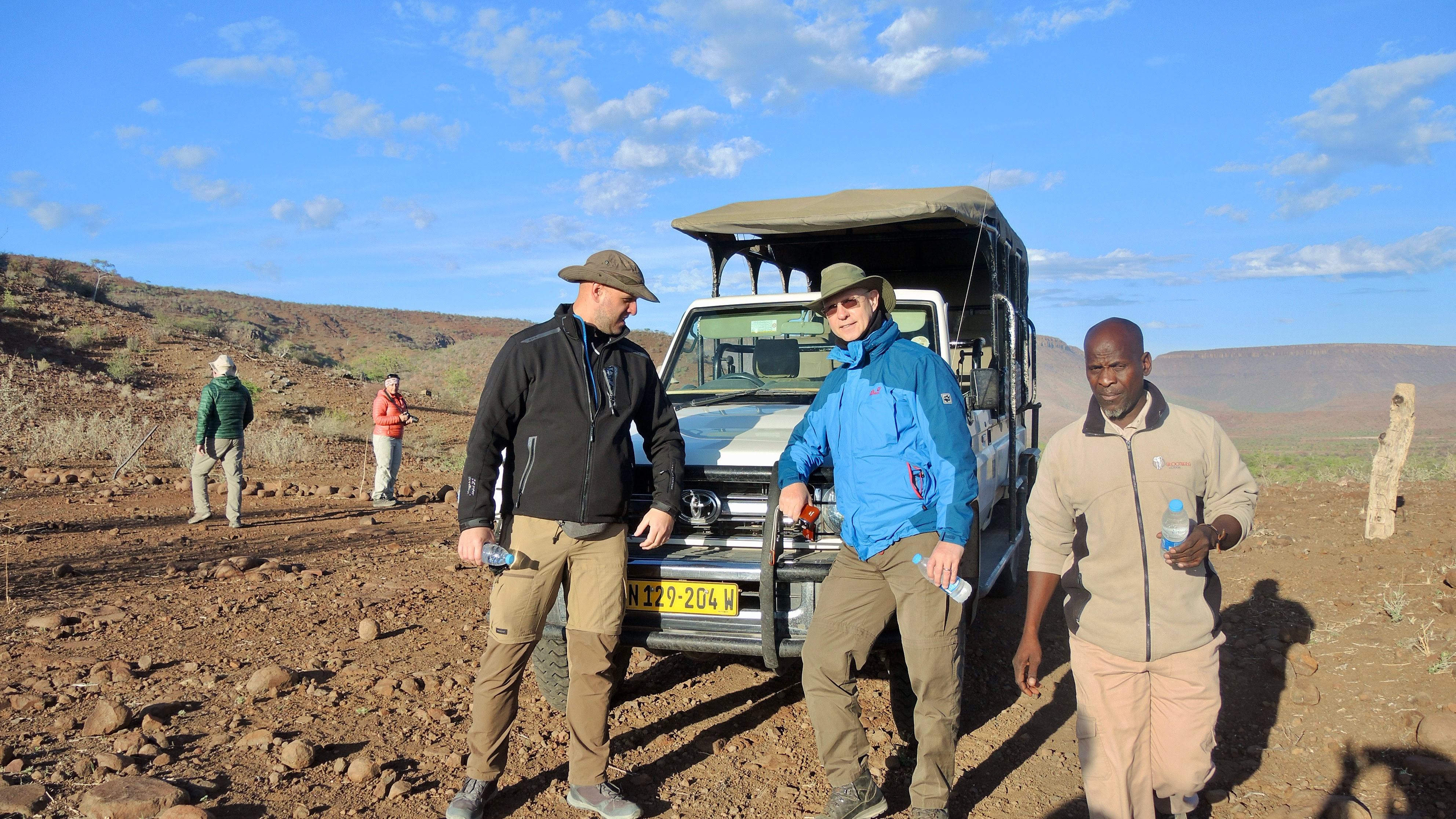 As always, we started in the Etango Ranch. Now you know each other and the greeting is accordingly friendly. With two Ford Rangers we finally headed south. Our first stop was Mariental. Here we got to see the legendary Shongolo Express. A beautiful historical train. The next big goal was the dune 45 in the Namib Naukluft Park. Like the last time, we climbed the 170m high dune. It went further north via Solitaire. The next extraordinary place to stay was Doro! Nawas. A lodge to fall in love with. The first time we were able to push our bed outside to sleep under a starry sky. In Grootberg we did an 8 hour Rhino tour. We were lucky enough to see a rhinoceros up close. Distance about 100 meters. A majestic animal. We saw more animals in Etosha Park. We were very lucky here and saw lions, giraffes, elephants, wildebeests, and many more. One of the last highlights was a visit from friends to the Dornhügel Lodge….And three weeks had passed.