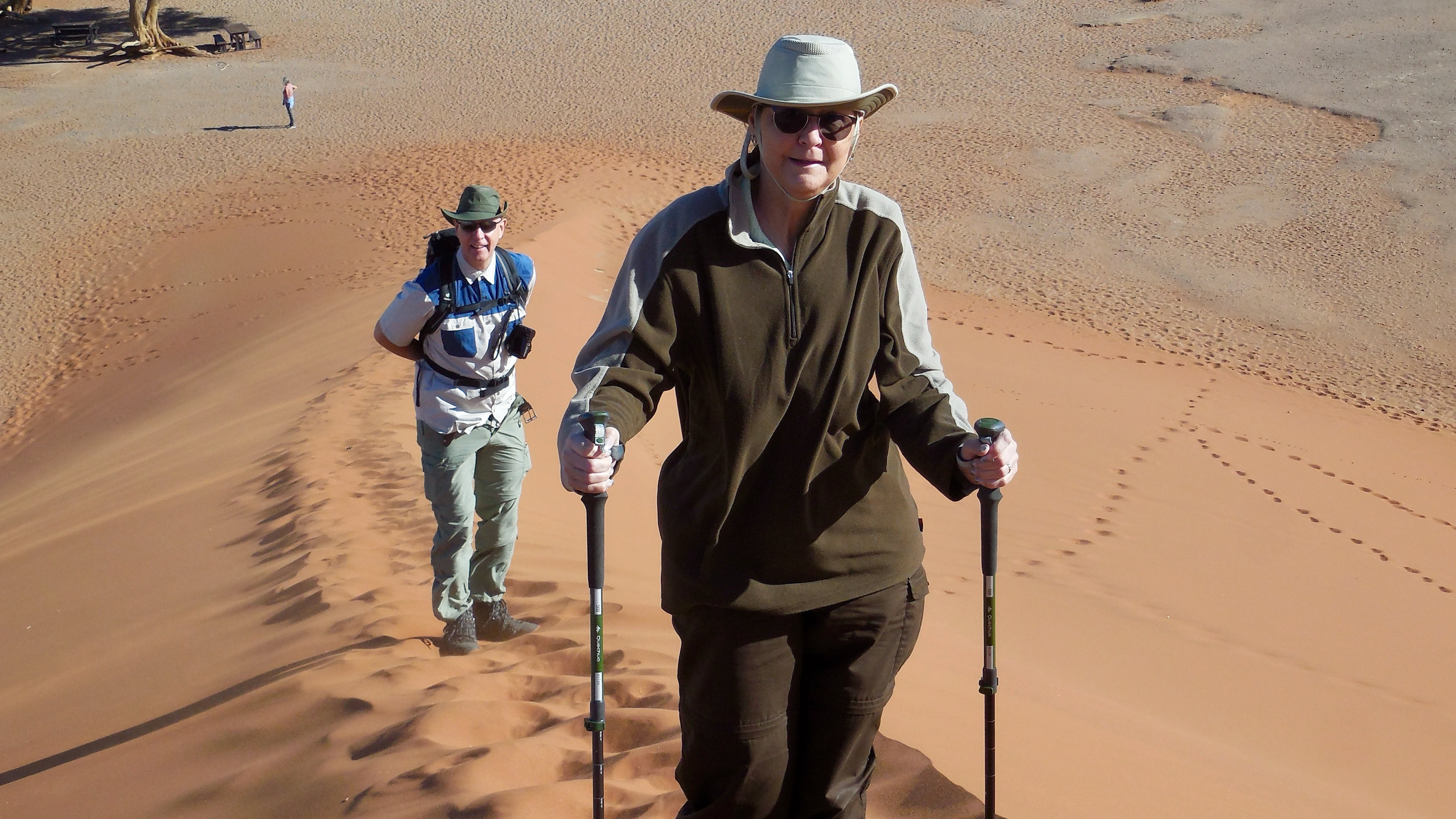Wie immer starteten wir in der Etango Ranch. Mitlerweile kennt man sich und entsprechend freundlich ist die Begrüßung. Mit zwei Ford Ranger ging es dann letztendlich in Richtung Süden los. Unsere erste Station war Mariental. Hier bekamen wir den legendären Shongolo Express zu sehen. Ein wunderschöner historischer Zug. Das nächste große Ziel war die Düne 45 imNamib Naukluft Park. Wie schon die letztenmale bestiegen wir die 170m hohe Düne. Über Solitaire ging es weiter in den Norden. Die nächste aussergewöhnliche Unterkunft war Doro !Nawas. Eine Lodge zum Verlieben. Das erstemal das wir unser Bett ins Freie schieben konnten um so unter sternenklarem Himmel zu schlafen. In Grootberg machten wir eine 8 Std. lange Rhino-Tour. Wir hatten Glück und sahen ein Nashorn aus nächster Nähe. Distanz ca. 100 Meter. Ein majestisches Tier. Weitere Tiere bekamen wir im Etosha Park zusehen. Hier hatten wir sehr viel Glück und konnten Löwen, Giraffen, Elefanten, Gnus, und viele mehr, sehen. Einer der letzten Höhepunkte war der Besuch von Freunden auf der Dornhügel Lodge. ...Und schon waren wieder drei Wochen um.