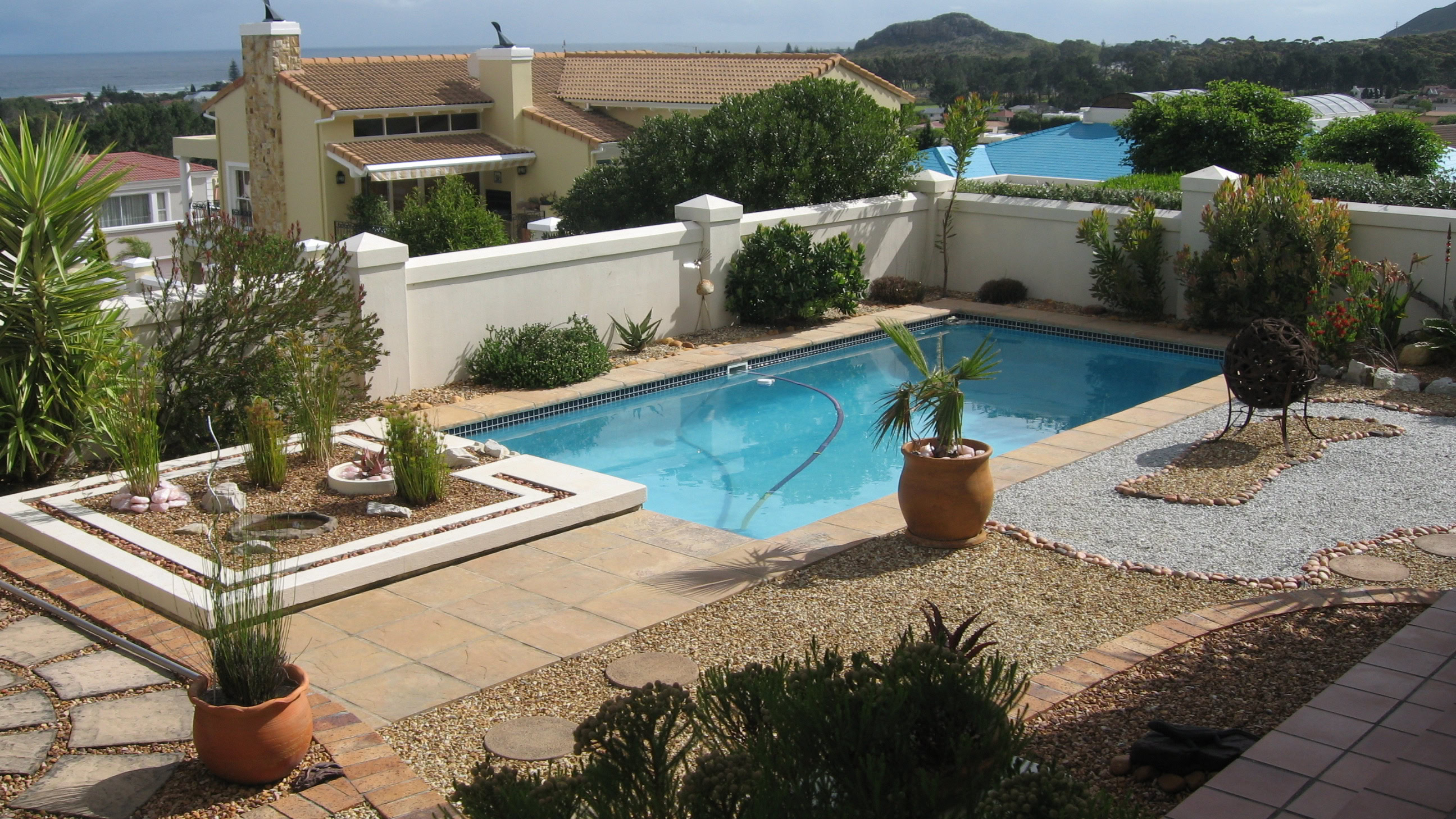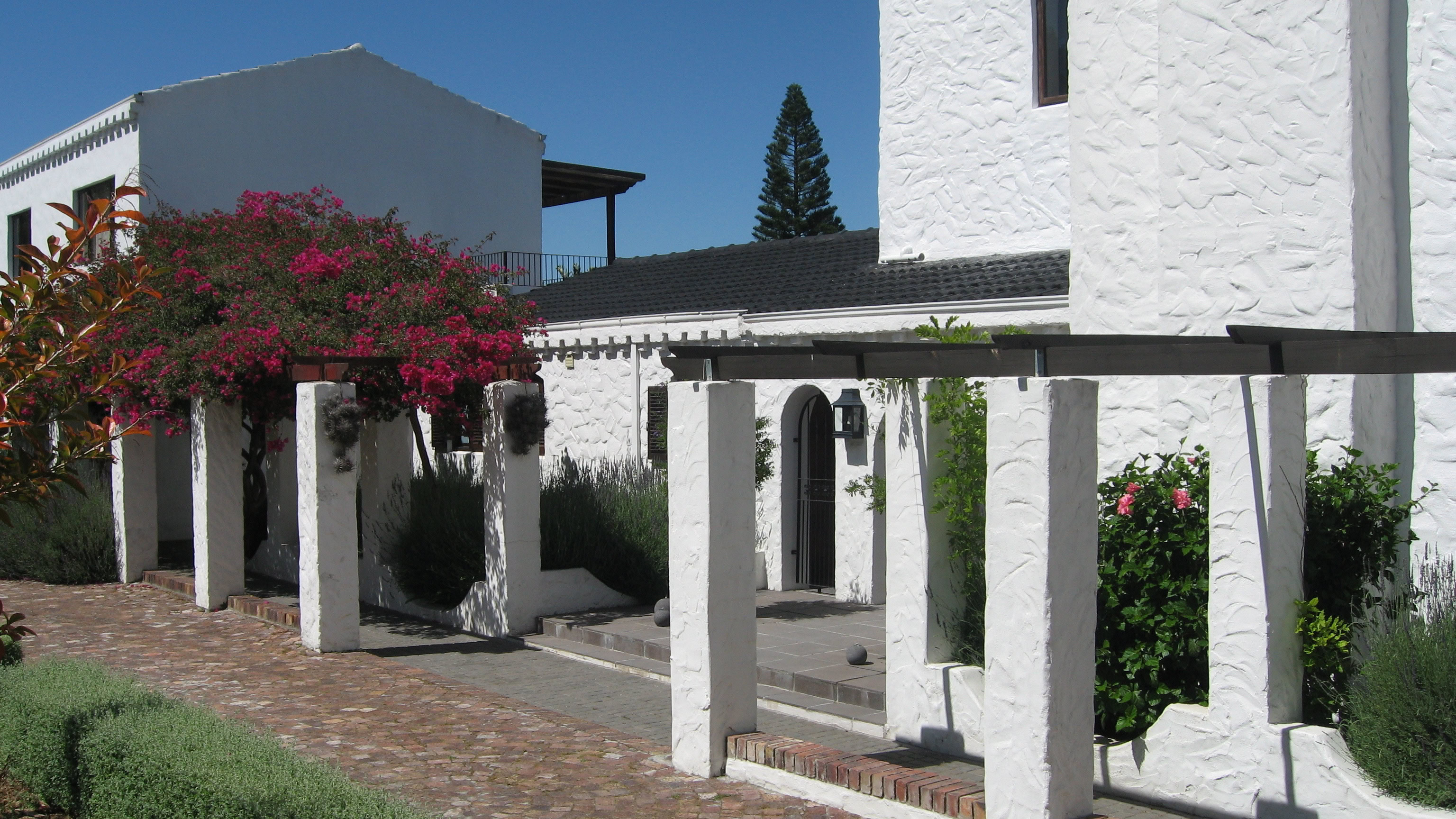 Unser diesjähriges Reiseziel war Südafrika, genauer gesagt Kapstadt. Wir haben jedoch an zwei verschiedenen Orten in der Nähe Kapstadts gewohnt. Zum einen waren wir in Somerset West im „Montrose Guesthouse“, einem wunderschönen, liebevoll geführten Anwesen. Haus, Einrichtung und auch der Garten waren von sehr hohem Niveau. Da Kapstadt in der Weinregion liegt, haben wir uns natürlich auch einige der vielen Weingüter angesehen und viel Wein verkostet.