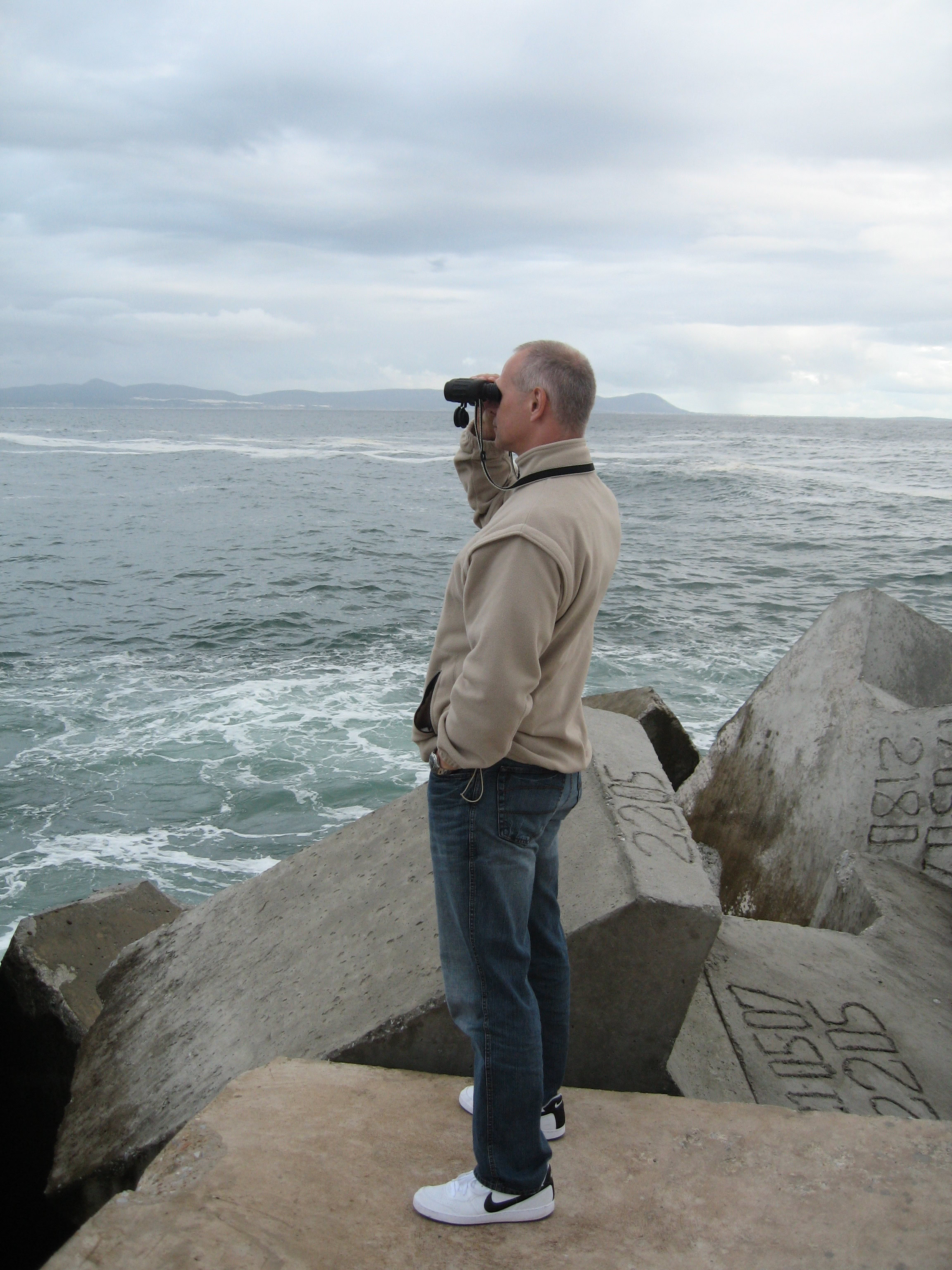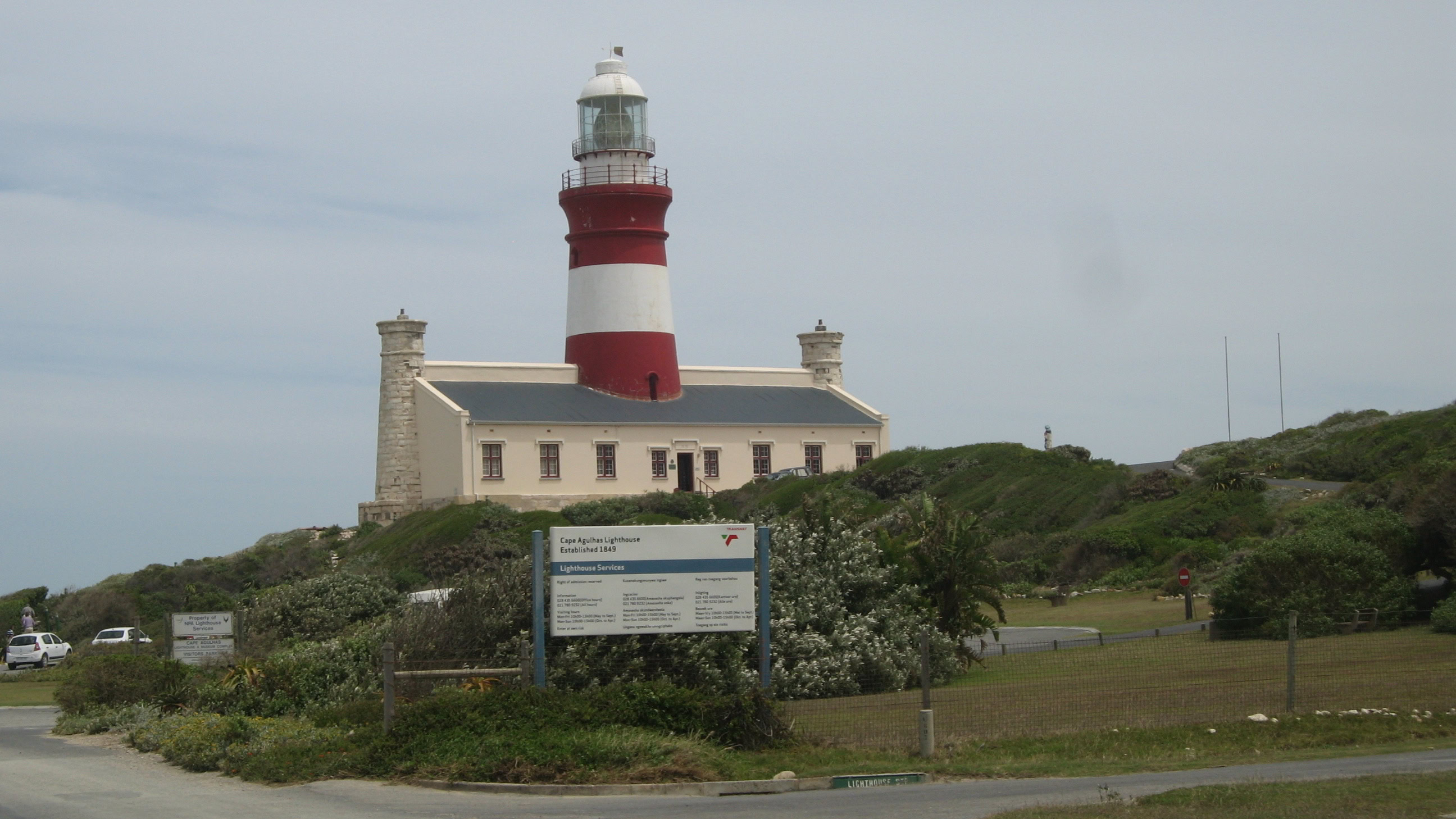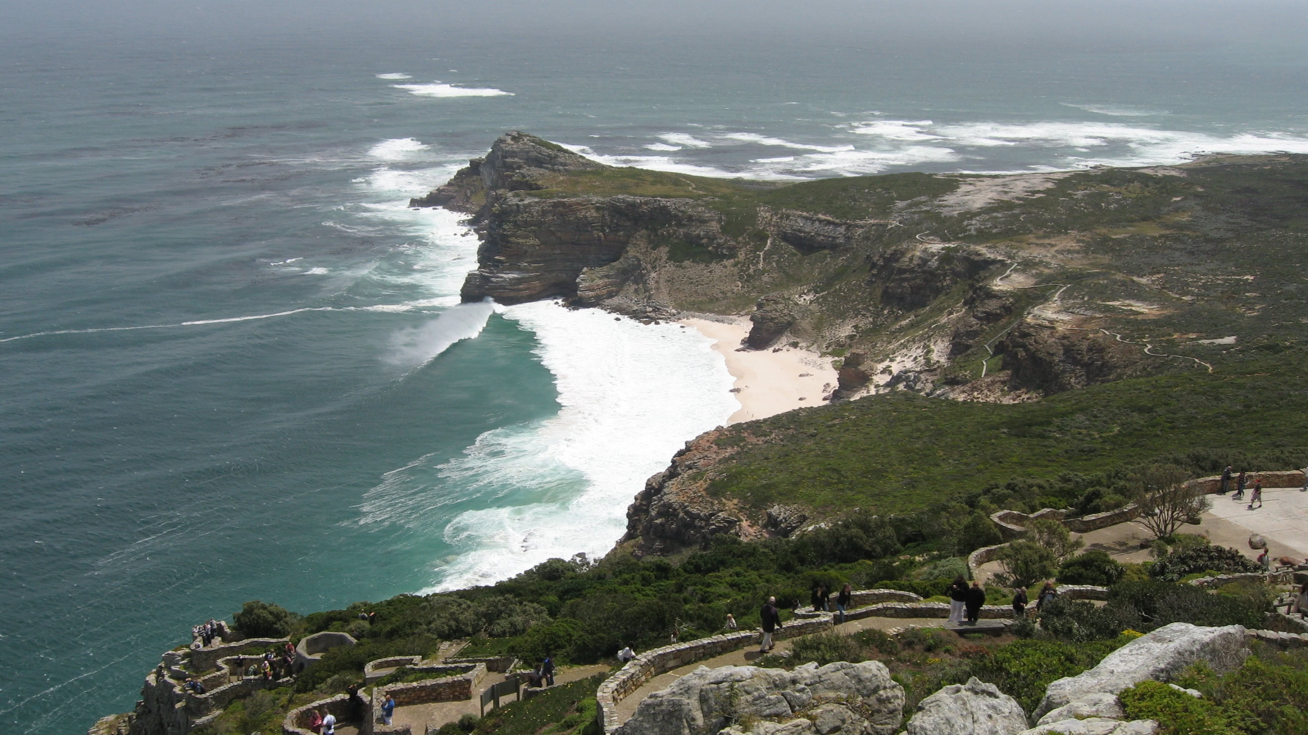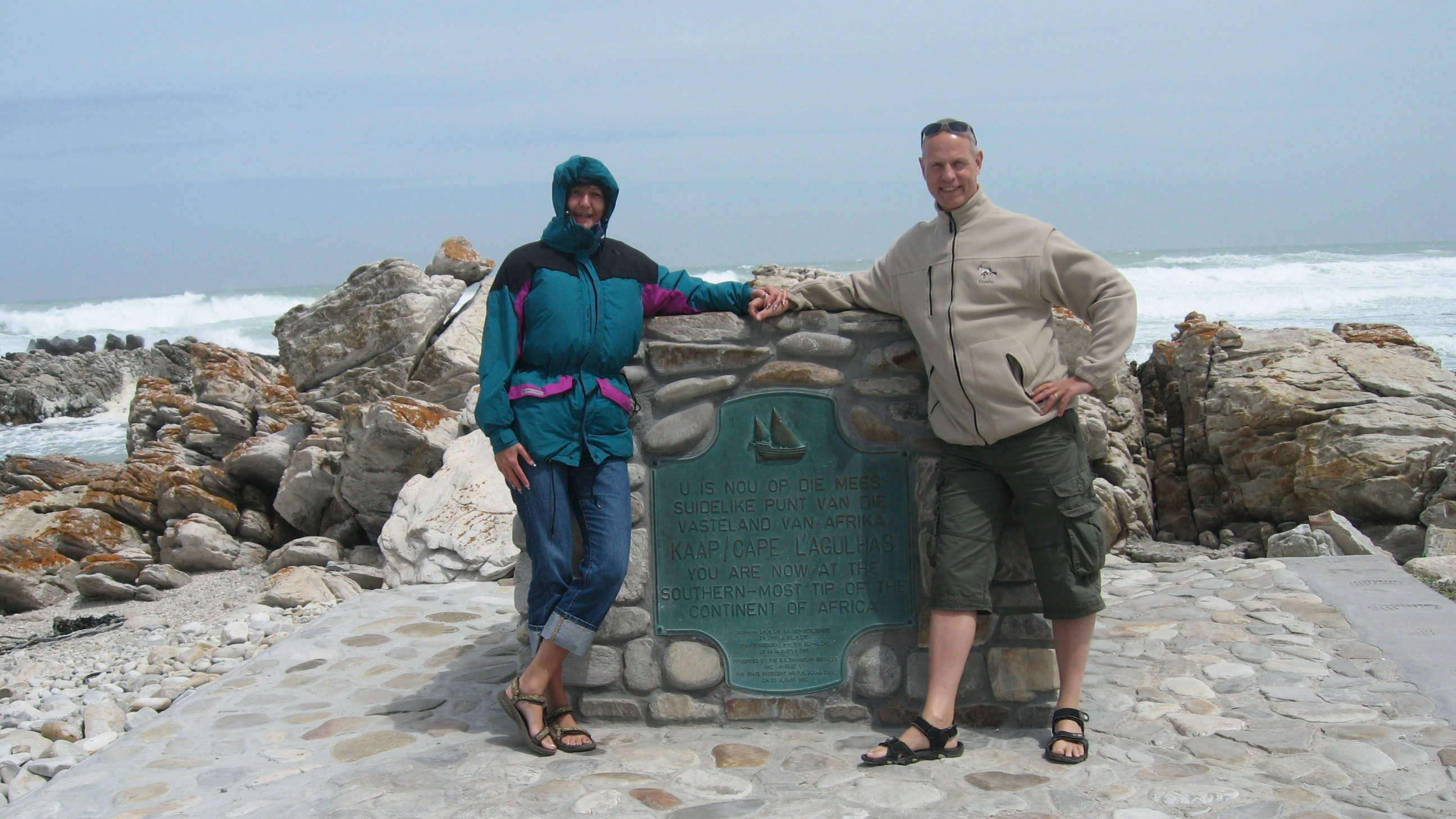 Wenn man in Kapstadt ist, lässt man das Kap der Guten Hoffnung nicht aus. Eine Fahrt durch den Naturschutzpark und anschließend eine Stunde zu Fuß – herrlich! Es war aber nicht der südlichste Punkt, wie man irrtümlicherweise zu glauben scheint. Das ist am Kap Agulhas, drei Stunden östlich von Kapstadt. Hier treffen Indischer und Atlantischer Ozean aufeinander. Allerdings wehte uns der Wind fast weg.